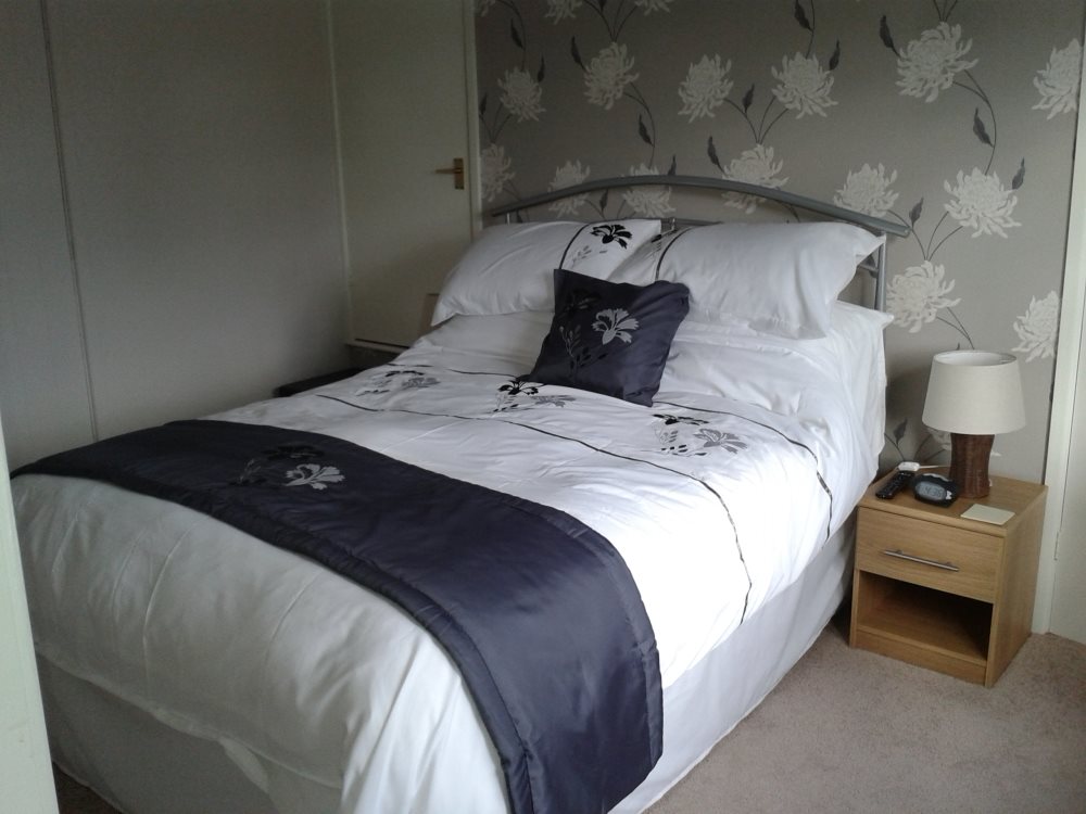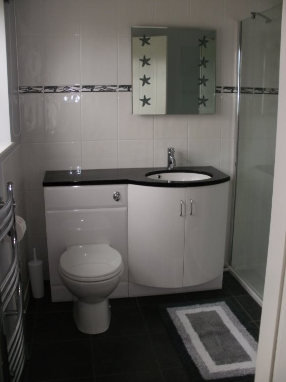 - Bedroom with double bed, TV with DVD, walk-in wardrobe, en-suite shower room with modern wash basin/toilet and walk-in shower unit.